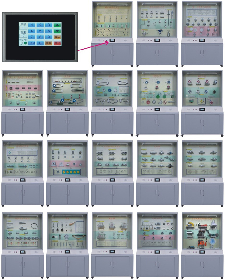 機(jī)械設(shè)計零件陳列柜,是根據(jù)機(jī)械設(shè)計(零件)課程基本要求設(shè)計制造的實(shí)驗(yàn)設(shè)備。陳列柜通過機(jī)械零件模型或?qū)嵨铮浜舷鄳?yīng)的圖文資料,形象地展示與解說機(jī)械設(shè)計的基本知識,加強(qiáng)學(xué)生對通用機(jī)械零件的類型、結(jié)構(gòu)特點(diǎn)及其設(shè)計的感性認(rèn)知,為進(jìn)一步學(xué)習(xí)機(jī)械設(shè)計奠定基礎(chǔ)。