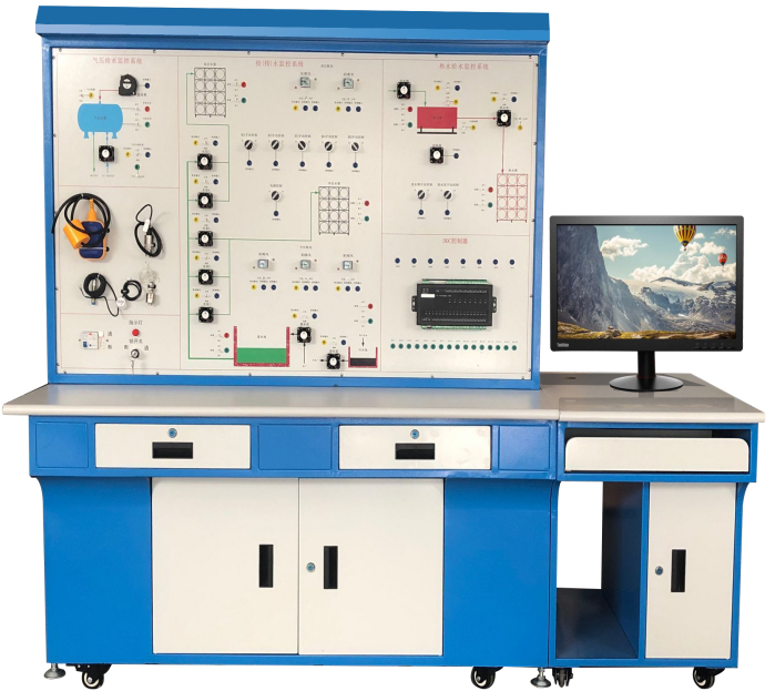 控制器的操作與編程、給水控制、排水控制、氣壓給水控制、熱水供水控制、水位傳感器的安裝與連接,系統(tǒng)軟件的組態(tài)、配置與控制,線路的設計與連接、故障的設置、判斷及排除等實驗和實訓,并可與樓宇自控系列中的其它設備聯(lián)網(wǎng)進行各種綜合實訓。